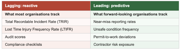 Near-miss reporting rate, for instance, is a leading indicator, the more actively employees report near misses, the more proactive the safety culture. That’s the signal worth watching.